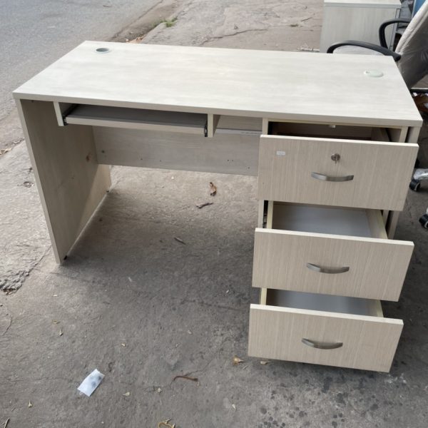 Tình trạng: Bàn làm việc 1m2 cũ 3 hộc màu kem này là sản phẩm đã qua sử dụng, bàn có chất liệu tốt nên có thể sử dụng lâu dài mà không lo hư hỏng, bàn được thiết kế hình chữ nhật có một hộc liền và một ngăn kéo cánh mở, được thiết kế đi kèm với ổ khóa giúp cho người dùng bảo quản đồ đạc và tài liệu an toàn, không lo thất lạc hay bụi bẩn., đặc biệt Kho Hàng Thanh Lý luôn có nhiều sản phẩm, nhiều màu sắc, kích thước và số lượng lớn phù hợp cho quý khách hàng đang muốn setup bàn ghế văn phòng thanh lý giá rẻ.