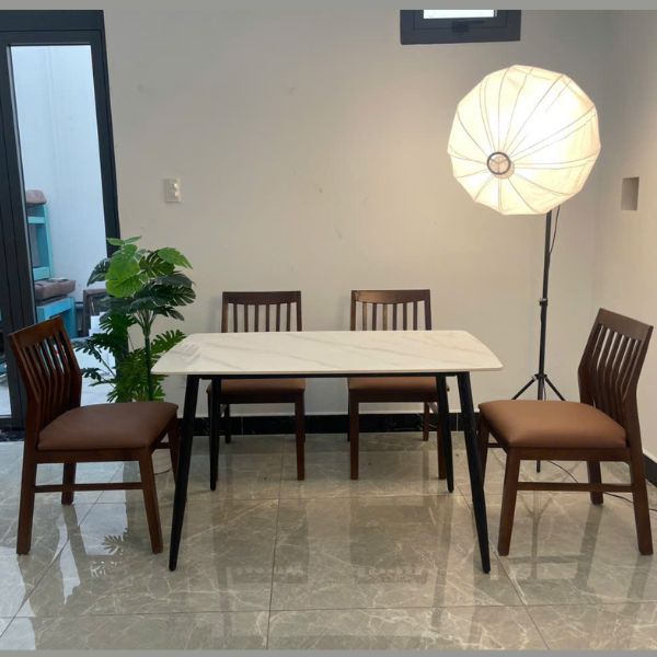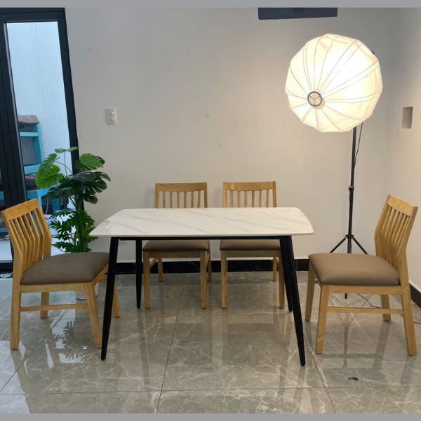 - Mô tả: Bộ bàn ghế ăn Bingo mang thiết kế sang trọng, chất liệu gỗ chắc chắn kết hợp mặt nệm êm ái, tạo điểm nhấn tinh tế cho không gian bếp. Tông màu hiện đại dễ phối với mọi phong cách nội thất gia đình. Sản phẩm bền đẹp, phù hợp sử dụng lâu dài và nâng tầm thẩm mỹ ngôi nhà. Lựa chọn lý tưởng cho gia đình muốn tìm bộ bàn ăn chất lượng – giá tốt.