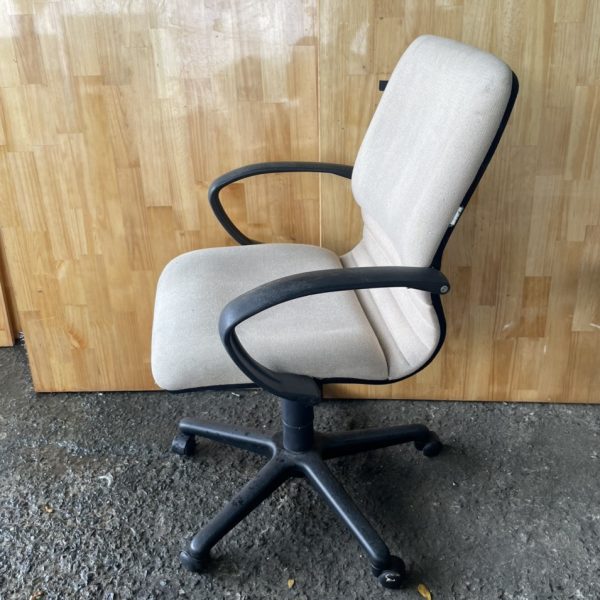 Ghế xoay lưng trung cũ có tay vịn màu kem, chuyên mua bán các sản phẩm bàn ghế văn phòng cũ chất lượng cao với mức giá tốt nhất hiện nay. Kho Hàng Thanh Lý là đơn vị uy tín số 1 về lĩnh vực cung cấp hàng thanh lý tại TPHCM và các tỉnh thành lân cận.
