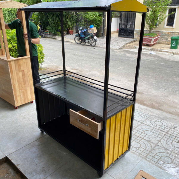 Quầy bán hàng lưu động khung sắt mặt gỗ kích thước 1m65