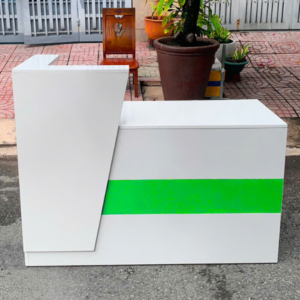 Quầy lễ tân 1m4x60cm trắng xanh tồn kho giá rẻ