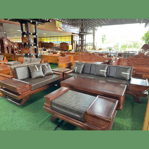 - Mô tả: Bộ salon gỗ nguyên khối nệm da cao cấp là lựa chọn hoàn hảo cho những ai yêu thích phong cách sang trọng và bền vững. Khung salon được chế tác từ gỗ tự nhiên nguyên tấm, vân gỗ đều và dày dặn, mang đến vẻ đẹp bề thế và cứng cáp. Phần nệm da màu nâu đậm cao cấp mang lại cảm giác êm ái, dễ vệ sinh và tôn lên sự tinh tế. Bàn trà gỗ đồng bộ, kết hợp cùng đôn tiện lợi giúp không gian thêm hoàn chỉnh và tiện nghi. Bộ salon phù hợp cho phòng khách gia đình, sảnh chờ công ty, hoặc không gian đón tiếp trang trọng.