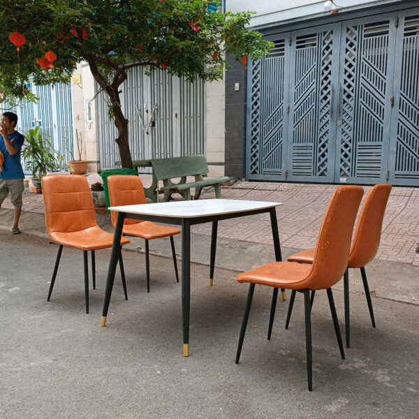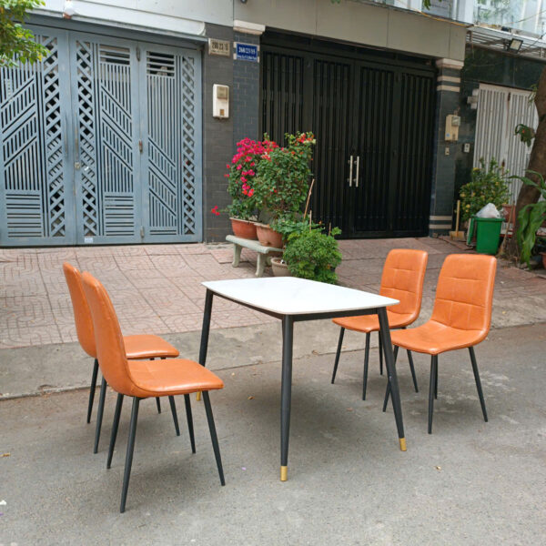 Nâng cấp không gian ăn uống với bộ bàn ăn 4 ghế màu cam sang trọng.