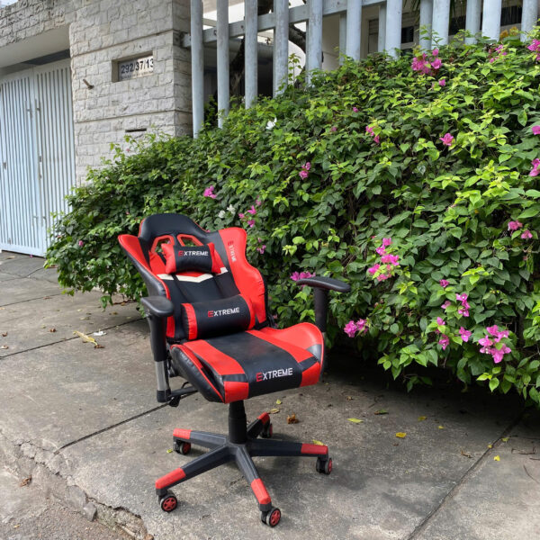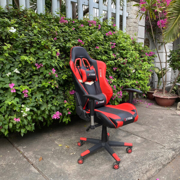 Mô tả: Ghế gaming Extreme với thiết kế công thái học giúp người dùng ngồi lâu mà không mỏi. Tựa lưng cao, ôm sát cơ thể, hỗ trợ cột sống tối đa. Đệm ngồi dày dặn, bọc da cao cấp, tạo cảm giác êm ái và thoải mái khi chơi game hoặc làm việc. Ghế có gối tựa lưng và tựa cổ giúp giảm căng thẳng vùng vai gáy. Chân xoay 360 độ linh hoạt, bánh xe di chuyển êm ái trên nhiều bề mặt. Tay vịn có đệm lót giúp tăng độ thoải mái khi sử dụng trong thời gian dài.