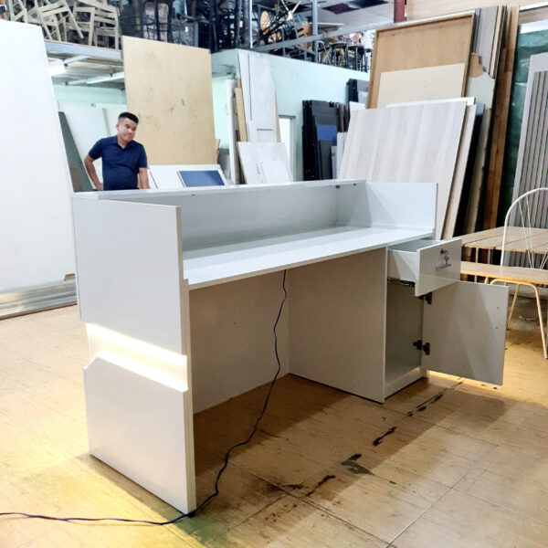 Thanh Lý Quầy Lễ Tân Đóng Mới 1m6 Full Ván Trắng Bóng