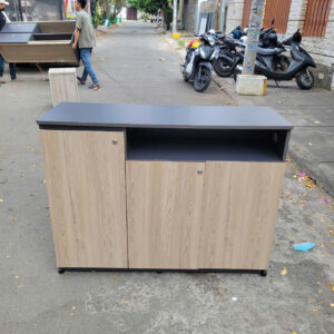 Mô tả: Tủ hồ sơ cũ với thiết kế hiện đại, mặt ngoài phủ sơn màu trầm kết hợp chân đế gỗ công nghiệp tạo nên vẻ đẹp tối giản nhưng sang trọng. Tủ được chia thành ba ngăn với cửa mở, phù hợp để lưu trữ hồ sơ, giấy tờ hoặc các vật dụng cần thiết trong văn phòng. Với kích thước nhỏ gọn, tủ dễ dàng bố trí trong các không gian văn phòng, phòng làm việc tại nhà hoặc cửa hàng.