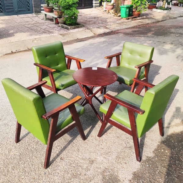 Bộ bàn cafe chân sao ghế sofa đơn gỗ chữ A bền đẹp