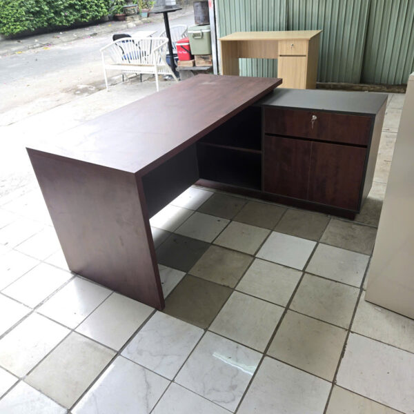 - Mô tả: Bàn giám đốc gỗ cao cấp là lựa chọn hoàn hảo cho những ai muốn khẳng định phong cách sang trọng và đẳng cấp trong không gian làm việc. Mặt bàn phủ melamine vân gỗ cao cấp, kết tông nâu đỏ sang trọng và màu xám trung tính, tạo cảm giác hiện đại nhưng vẫn ấm áp. Chất liệu gỗ công nghiệp dày dặn bền bỉ, chống trầy xước, dễ vệ sinh, giữ màu bền đẹp theo thời gian. Yếm bàn được trang trí với đường chỉ vàng nổi bật, tạo điểm nhấn tinh tế. Bàn còn có khoang phụ rộng rãi để lưu trữ hồ sơ, máy in hoặc vật dụng cần thiết, đảm bảo tiện lợi cho công việc hằng ngày.