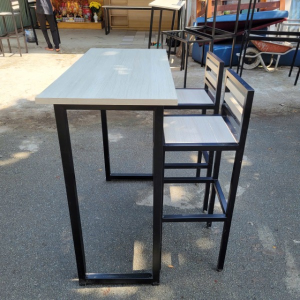 - Mô tả: Bộ bàn ghế bar chân sắt mặt gỗ thanh lý mang thiết kế tối giản hiện đại phù hợp cho quán cà phê nhà hàng hoặc khu vực pantry văn phòng. Mặt bàn và ghế làm từ gỗ công nghiệp phủ melamine màu sáng sang trọng kết hợp cùng khung chân sắt sơn tĩnh điện màu đen chắc chắn tạo nên tổng thể bền đẹp và tinh tế. Chiều cao tiêu chuẩn giúp ngồi thoải mái dễ quan sát không gian xung quanh đồng thời tiết kiệm diện tích cho khu vực bố trí. Dù là hàng thanh lý nhưng sản phẩm vẫn còn cứng cáp sử dụng ổn định và giữ được vẻ thẩm mỹ cao.