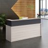 Quầy lễ tân 1m4 xám phối đen. Kho Hàng Thanh Lý là đơn vị chuyên thi công tủ trưng bày chất lượng với mức giá tốt nhất hiện nay.