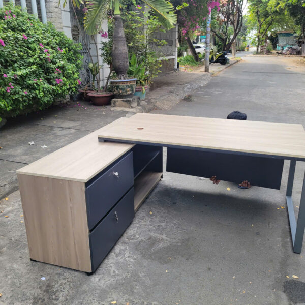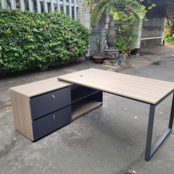 Chất liệu: Bàn giám đốc được làm từ ván công nghiệp MDF kết hợp chân sắt sơn đen loại tốt. Đã qua xử lý khả năng chống nước, chống ẩm tốt. Mặt bàn được phủ melamin láng đẹp, hạn chế được việc ố bẩn dính vào.