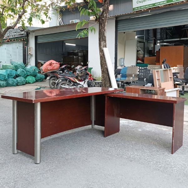 - Mô tả: mẫu bàn Giám đốc chữ L 1m8x1m2 thiết kế sang trọng, kiểu dáng hiện đại phù hợp mọi không gian văn phòng quản lý. Chất liệu gỗ MDF phủ Melamine chống ẩm, khung bàn chắc chắn, nẹp inox sáng đẹp. Hàng sử dụng kỹ, tình trạng như mới 90%, mua về dùng được ngay ạ. Sử dụng cho văn phòng, công ty hoặc làm việc tại nhà đều được.