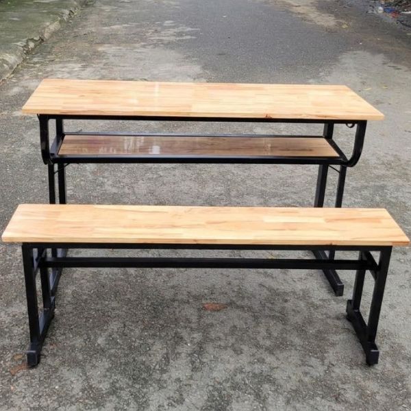 - Chất liệu: mặt gỗ tự nhiên kết hợp khung sắt dày dặn sơn tĩnh điện chống gỉ sét tốt