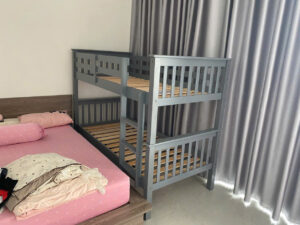 Mô Tả: Giường có 2 tầng, chắc chắn, phù hợp với không gian phòng ngủ không thực sự rộng rãi. Giường được làm bằng gỗ tự nhiên, tông màu xám cực kỳ sang chảnh.