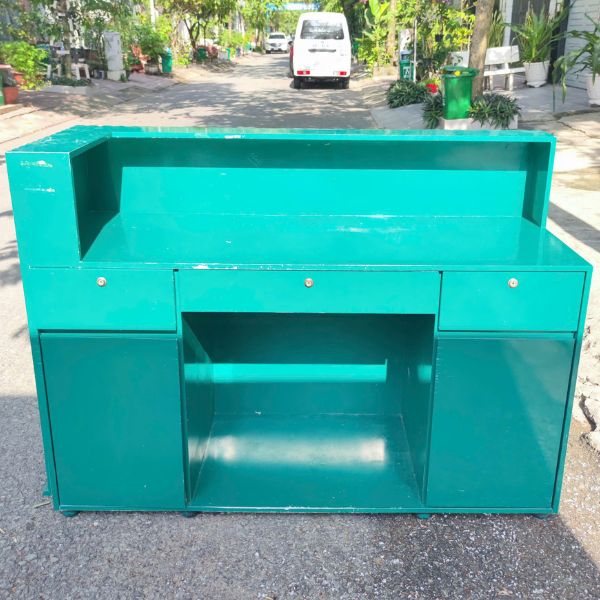 - Mô tả: quầy lễ tân xanh ốp lam thanh lý sở hữu thiết kế hiện đại, màu sắc nổi bật giúp không gian tiếp đón trở nên chuyên nghiệp và thu hút. Chất liệu gỗ công nghiệp chắc chắn, bề mặt hoàn thiện đẹp, ít trầy xước. Phù hợp sử dụng cho văn phòng, showroom, spa, cửa hàng cần quầy lễ tân giá rẻ nhưng vẫn đảm bảo thẩm mỹ. Sản phẩm thanh lý đã qua sử dụng, còn nguyên vẹn như hình, không bong tróc, không hư hỏng gì cả ạ. Mua về dùng được ngay.