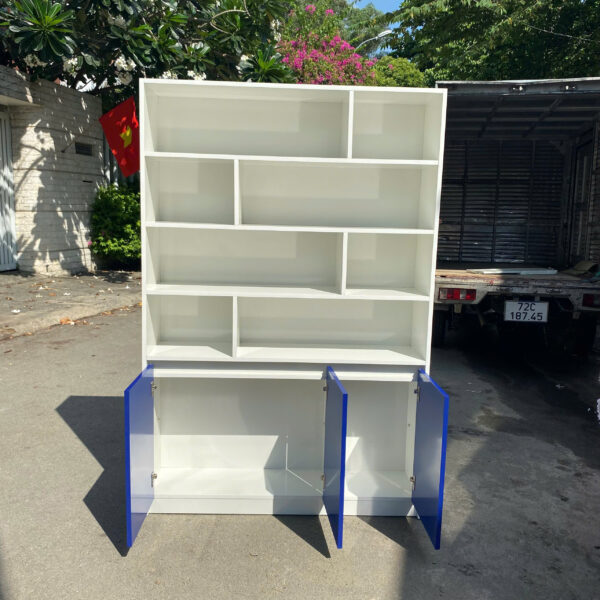 Tủ kệ trưng bày gỗ MDF trắng xanh 1m2x2m hiện đại