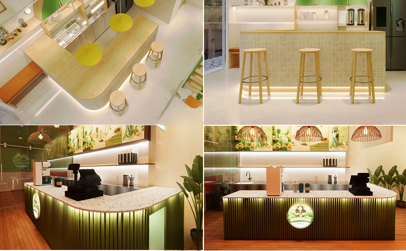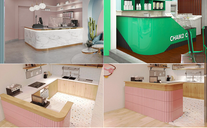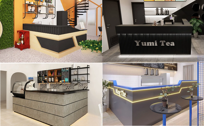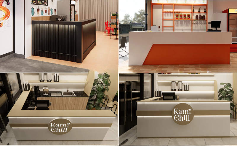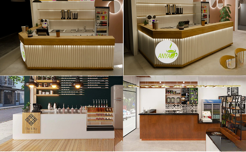 Ngày nay quầy pha chế trà sữa, cafe được bố trí một cách hợp lý mang lại sự tiện lợi cho người pha chế và tăng tính thẩm mỹ, sang trọng, mạnh mẽ, quý phái và đẳng cấp. Vì vậy vật liệu được sử dụng làm quầy bar pha chế trà sữa hàng đầu cấu thành quầy là gỗ công nghiệp MDF. Vật liệu MDF chống ẩm không chỉ đáp ứng tất cả các yêu cầu thẩm mỹ mà còn đáp ứng tối đa yêu cầu vệ sinh an toàn thực phẩm, mức giá khá tốt cũng như đáp ứng được độ bền cao. Kho Hàng Thanh Lý chuyên thiết kế thi công quầy pha chế trà sữa mẫu mã đẹp đa dạng.